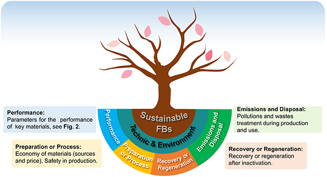 該綜述首先從技術可持續性和環境可持續性兩個方面,提出了影響液流電池關鍵材料可持續性的基本要素:穩定性和循環壽命、原子經濟性、可再生性、制備過程的可規模化、原材料與產品的安全性、廢物處理等。其中,技術可持續性主要從電池性能、關鍵材料的制備、回收再生等方面進行評價;環境可持續性主要從材料制備過程中的廢物排放和處理等方面進行評價。此外,該綜述分別總結了無機/有機活性電對/電解液、膜和電極材料等電池部件,以及一些新型液流電池的最新進展,并依據上述原則對其可持續性程度進行了總結。最后,該綜述對可持續性背景下液流電池的發展前景和挑戰進行了展望。